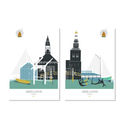 Dat zijn de tweeluik ontwerpen! Die zijn zó ontworpen, dat de illustraties in elkaar overlopen. Ze zijn er als kaarten, posters, tuinposters en kussens verkrijgbaar.